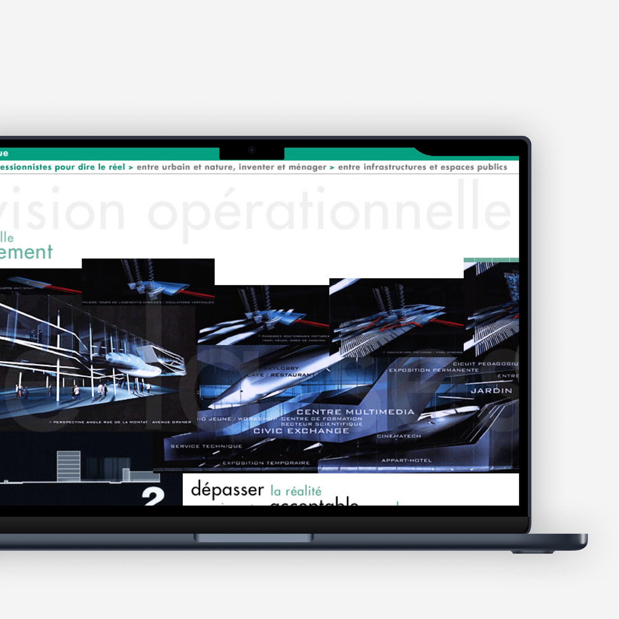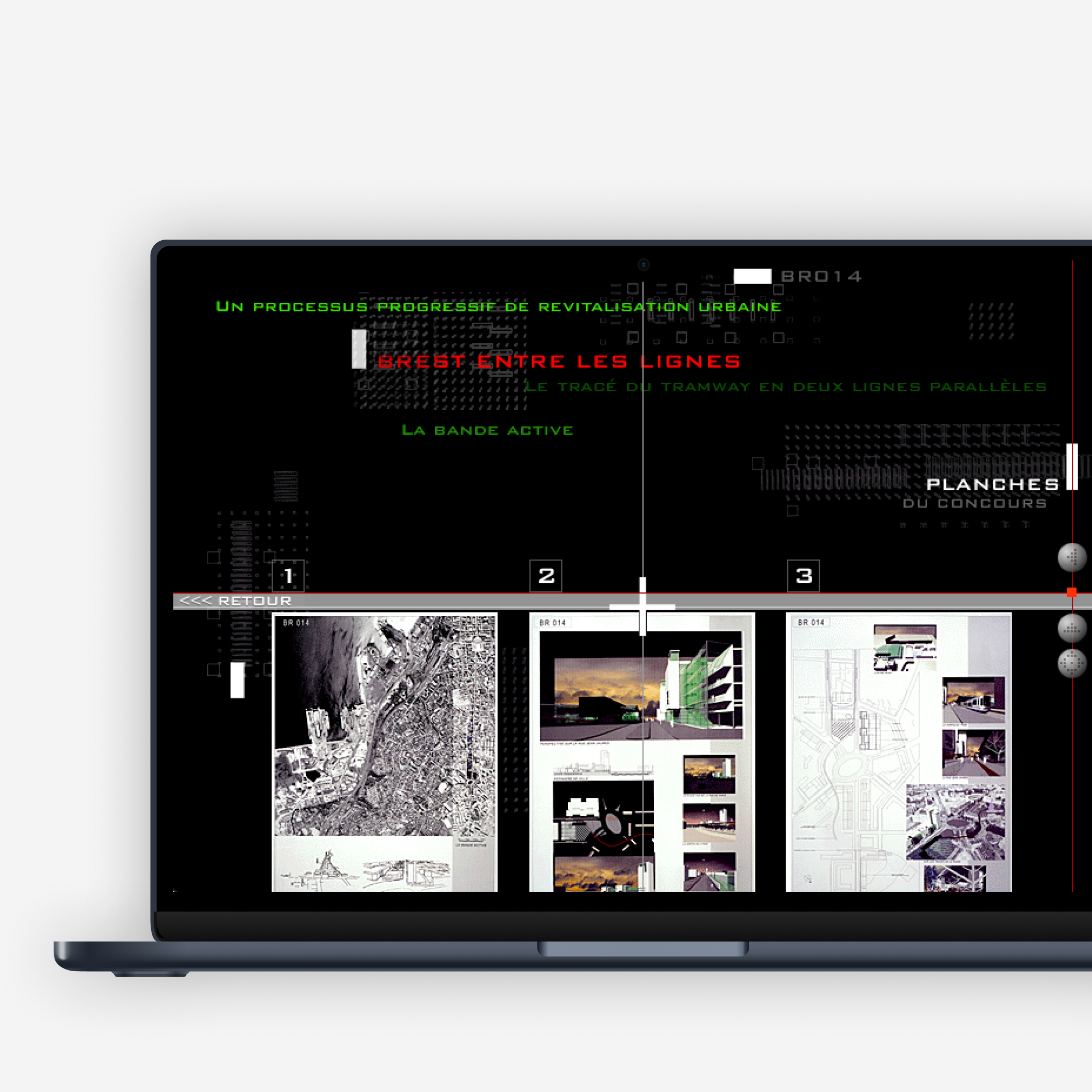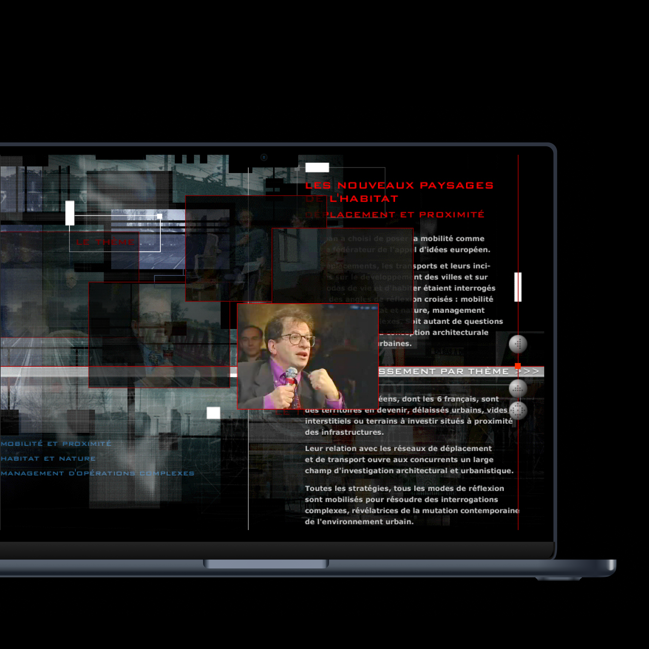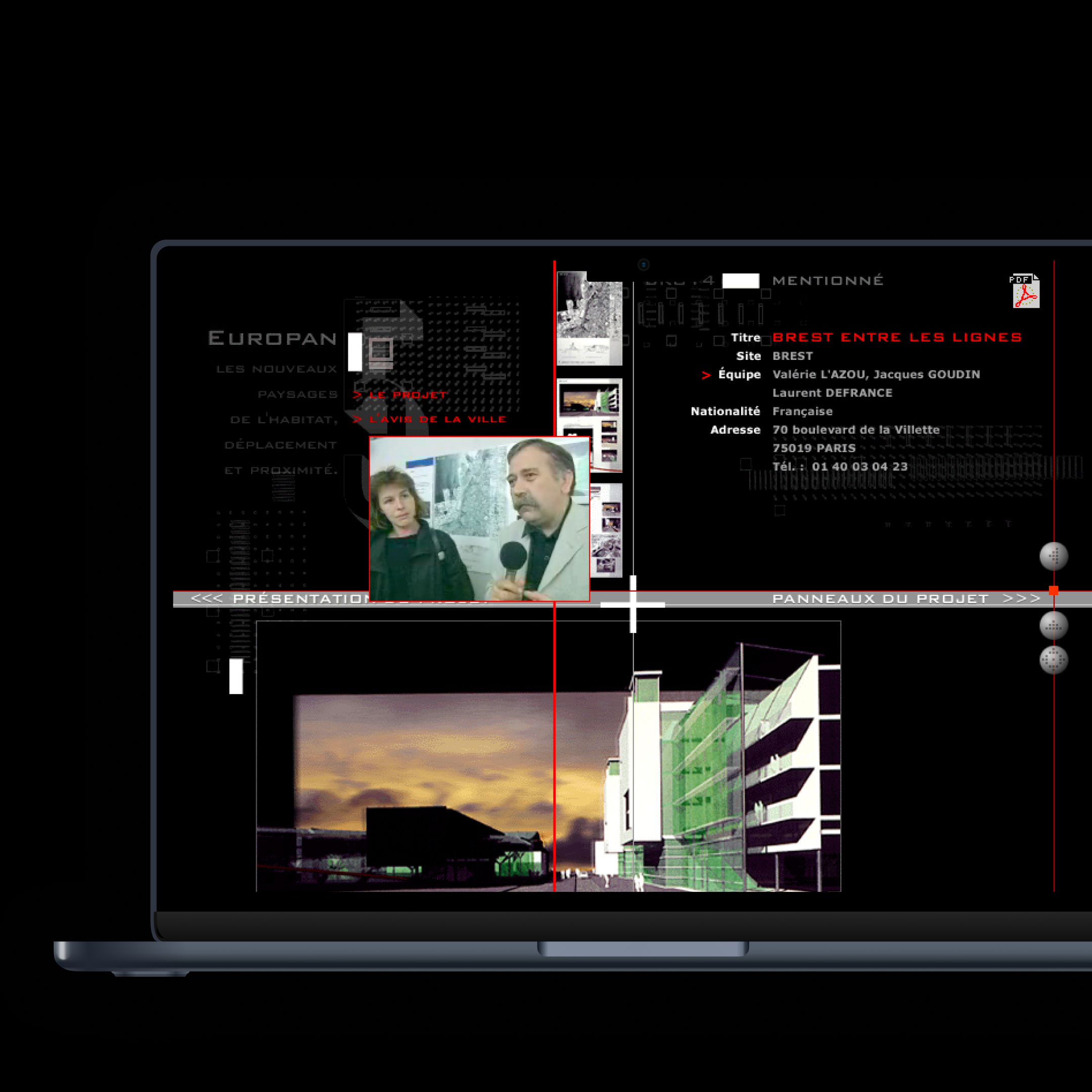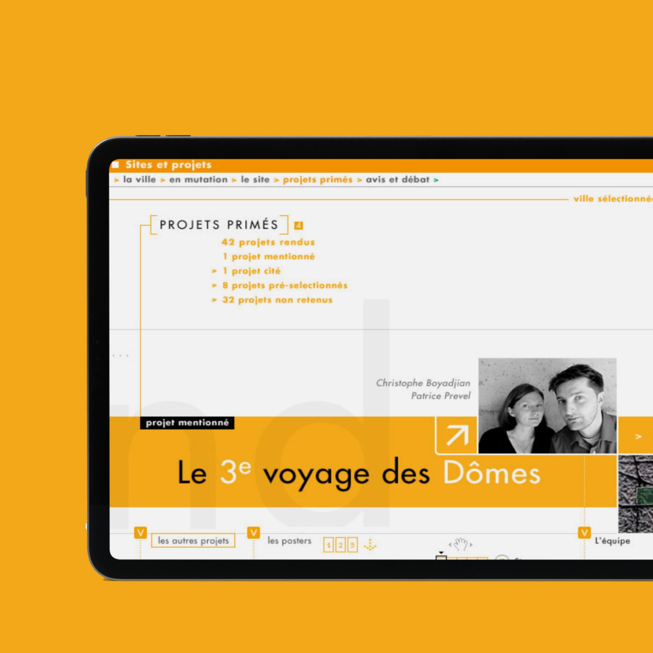 Approche hybride CD-ROM + site internet : prolongement événementiel du concours, diffusé dans des publications de référence en architecture et urbanisme.