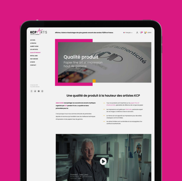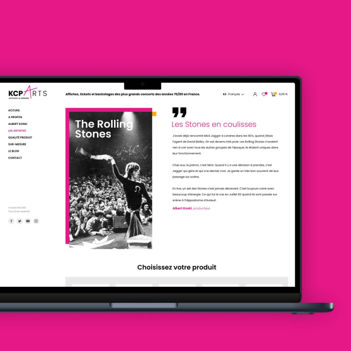 En 2022, nous avons fait revivre l’histoire de KCP à travers la commercialisation, sous forme d’œuvres d’art, des affiches, billets et badges backstage de ces concerts emblématiques, via un site e-commerce dédié.