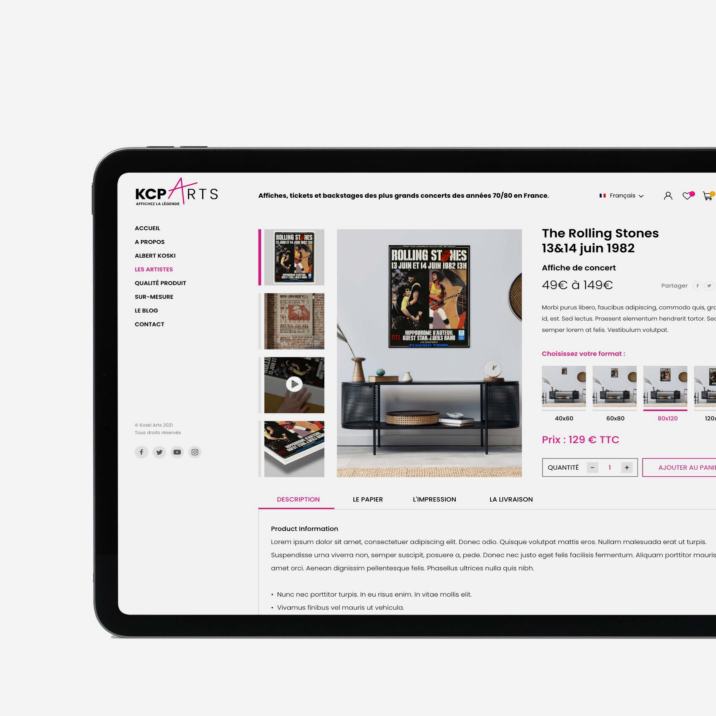 Rockart, opérant sous le nom KCP Arts, est une société spécialisée dans la production et la commercialisation d’affiches, posters et contenus liés à la musique et aux artistes légendaires. La société s’appuie sur un héritage fort dans le domaine du rock et de la culture musicale, proposant des produits haut de gamme et collaborant avec des artistes renommés tels que Albert Koski et des groupes emblématiques comme The Rolling Stones.